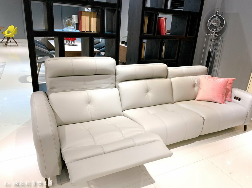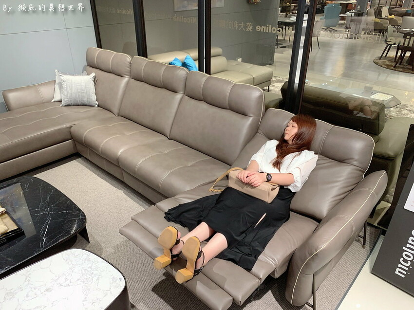 還有這款NICOLINE義大利進口真皮沙發MISSORI L型電動沙發深得我心,真的沒有店員介紹不知道他是電動沙發耶,去家具店還是需要請店員幫忙介紹款式功能,才不會錯過每個小細節,背靠及腳座都可電動調整高度及角度也太棒了吧,舒服到要睡著了,直接多一張床的概念,想換沙發了啦~