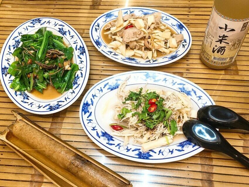 以泰雅婆婆美食店的名字成為烏來老街最有名的必吃名店,店內隨處可見泰雅族的圖騰及老闆的狩獵戰利品,充滿著濃濃的原住民風味。必吃的竹筒飯是老闆親自到山裡採的竹子,糯米香混著竹子的清香,入口Q彈香糯;鹹香下飯的炒山豬肉,以及獨特香氣的涼拌馬告豆腐都是店裡的人氣菜單。
