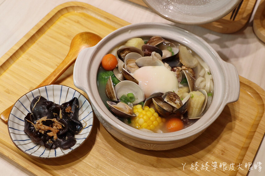 好多蛤蜊烏龍麵可以選全熟蛋或水波蛋,看到這麼多蛤蜊差點流口水,蛤仔很新鮮!烏龍麵吃起來彈牙爽口!一旁的黑木耳酸酸甜甜超好吃!推薦必點!