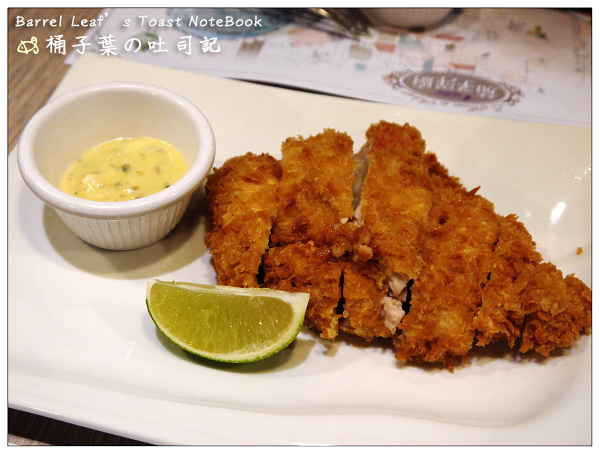 再另外單點這個藍帶雞排~送上來時就是已經切分好的,還有一個檸檬片與沾醬;