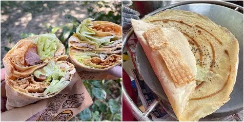 一口咬下表面有脆皮的口感和蛋香,內層是紮實加上高麗菜、紅蘿蔔等爽脆蔬菜。
