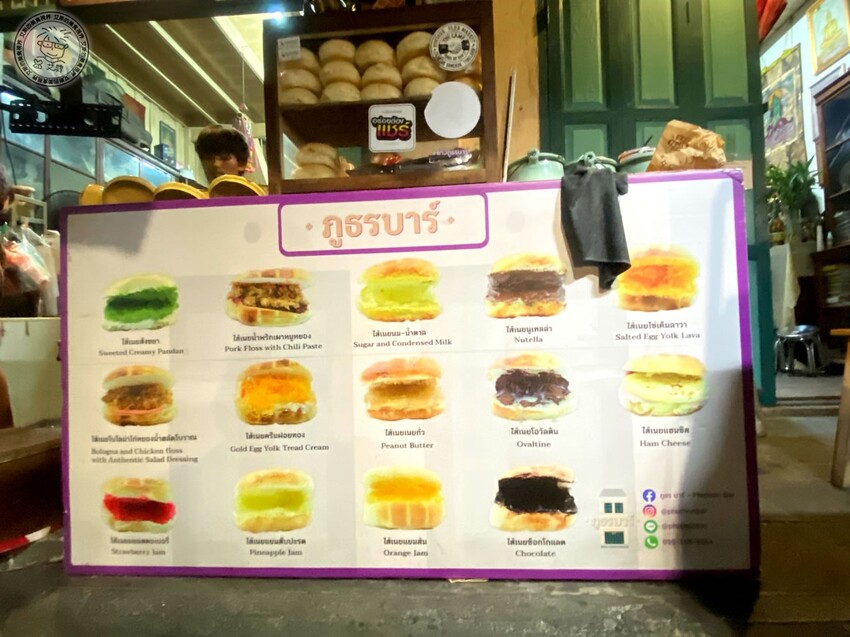 2.Pork Floss with Chili Paste NT.35 & 6.Gold Egg Yolk Tread Cream NT.30 & 12.Chocolate NT.35 & Thai Milk Tea (Frappe) NT.45