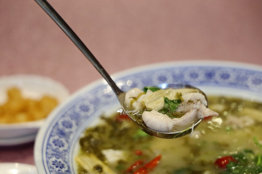 這道農家酸菜石斑魚,除了加了西瓜綿、酸菜之外,還加了腐竹、蓮藕增加口感層次。喝上一口湯,鮮味立即湧上舌尖,酸中微辣又帶點清甜,刺激了味蕾,是會一直想續湯的美味。新鮮國產石斑魚,吸附了湯汁的精華,口感緊實Q彈,吃了好滿足!