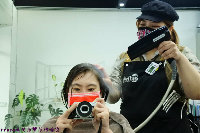 最後再用熱霧機,從頭頂髮流再到髮尾.