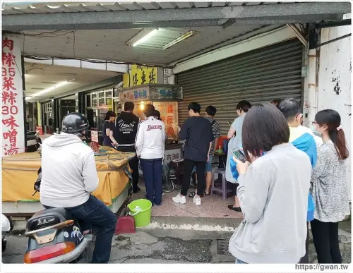 這天抵達黃石市場紅燒肉雞捲後,見到大家排隊,立馬也跟著排起來,沒多久身後也站了幾幾個人,把騎樓塞得滿滿的。