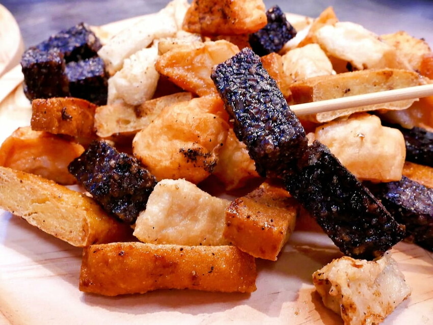 豬血糕則是柔嫩且香氣十足. 外表炸得香酥. 咬下去每一口都很紮實!