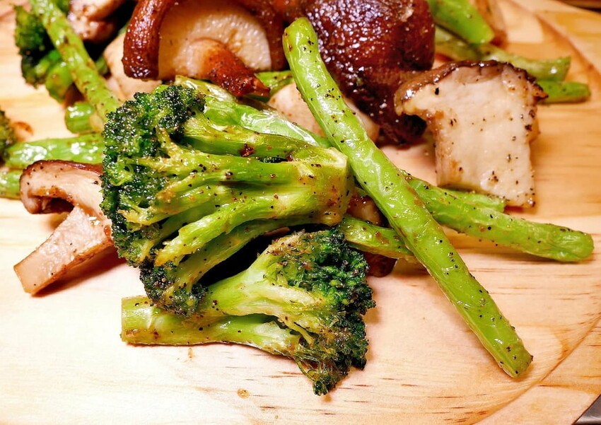 香噴噴的小資綜合青菜.同樣也是令人難以抗拒. 有四季豆/花椰菜/杏鮑菇/香菇四種青菜.酥炸起鍋後是鮮甜多汁.不會吃起來滿嘴油膩膩. 我好喜歡吃!