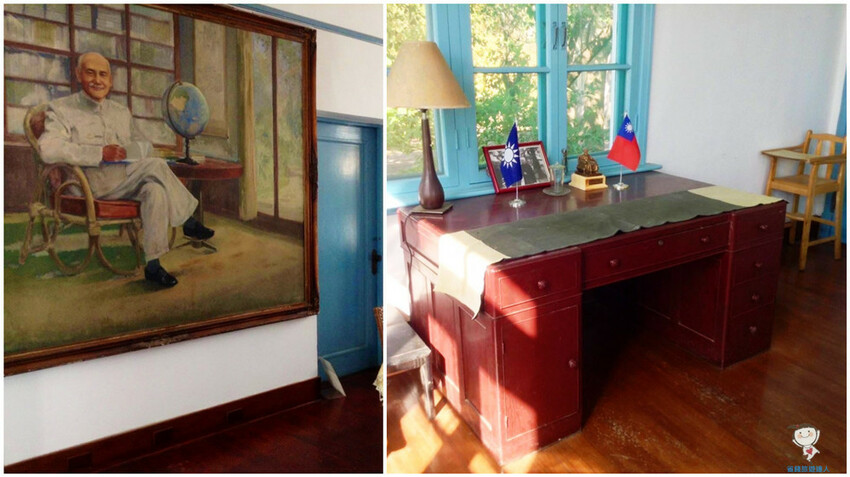 牆上還有大幅的蔣公畫像以及保留著當年蔣公用過的書桌