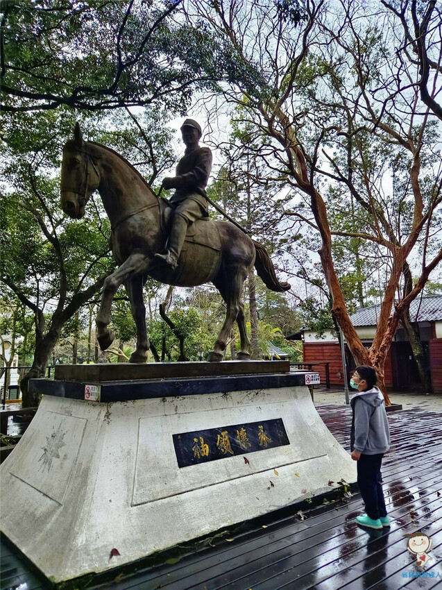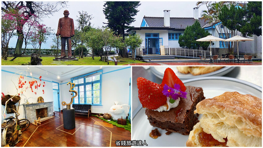 巨大的蔣公雕像就矗立在白牆藍框的木屋旁,讓人更加確信沒走錯地方