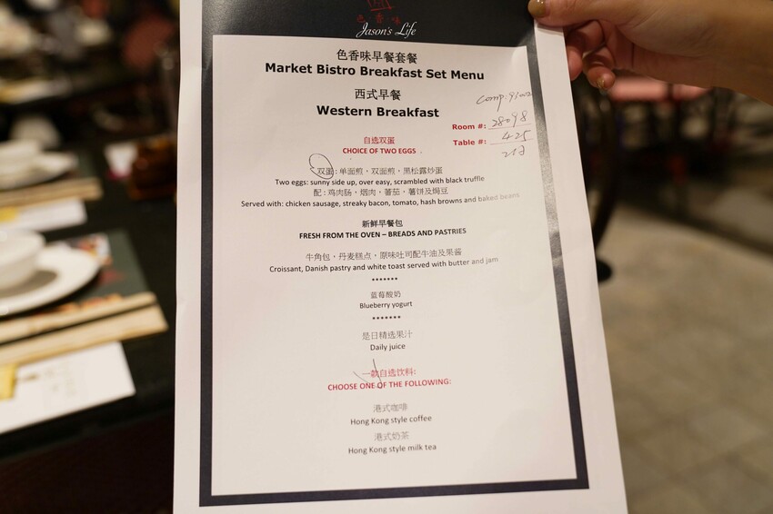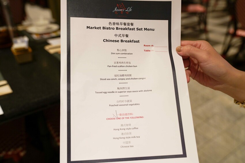 房間附早餐的菜單如下,是以set套餐為主,有西式和中式可以選擇