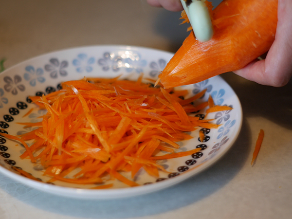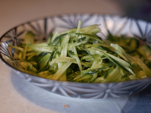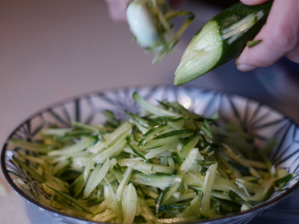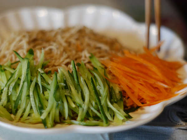 小黃瓜、胡蘿蔔🥕刨絲備妥,光是這兩個紅綠的色澤