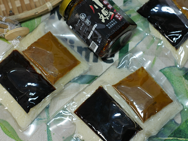每一袋打開來都有三包麵條搭配著三包低溫烘焙香郁芝麻醬