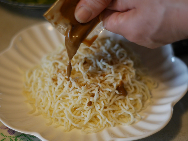 再將雙醬纖拌麵的麵條先煮過(會更軟爛)