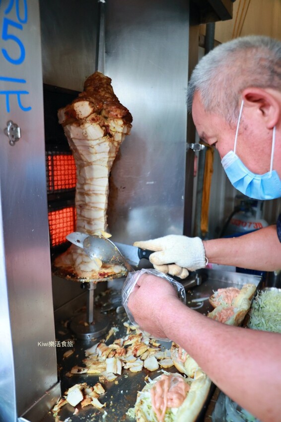 沙威瑪意味著勢力著的旋轉烤肉,這一層層堆疊的肉肉原來來自於土耳其,這串肉肉感覺肉怎麼切都切不完啊!台版的沙威瑪以咖哩醃漬雞胸肉串製而成,交替串在鐵棒上看了好療癒啊!