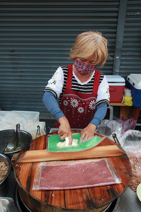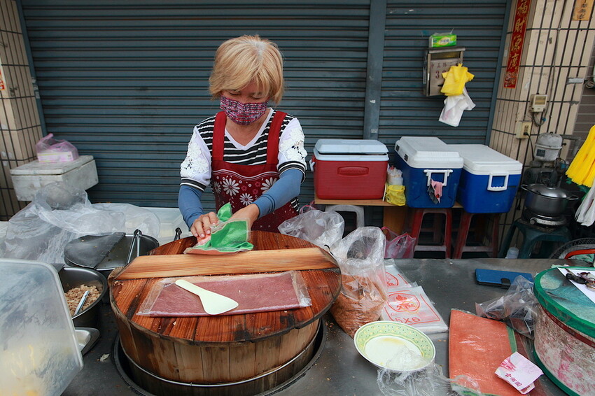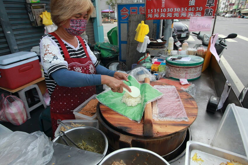 這裝盛糯米飯木桶尺寸比其他店家還要大,可見店家賣飯糰的生意是非常的好。