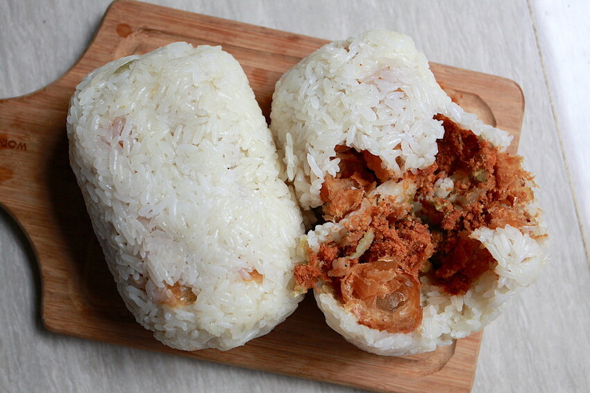 因為內餡滿滿加上糯米比例偏高,所以飯糰緊密度較差容易鬆散開。