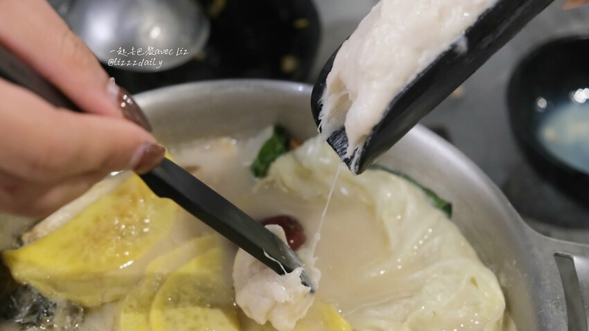 以酸辣的泡椒和青花椒等燉煮,讓香辣的滋味不斷的釋放,鍋裡有不少酸度很爽的酸菜以及軟嫩好吃的沙巴魚,真的是讓我一邊吃著喊著好辣,但又默默的多吃好幾口~!