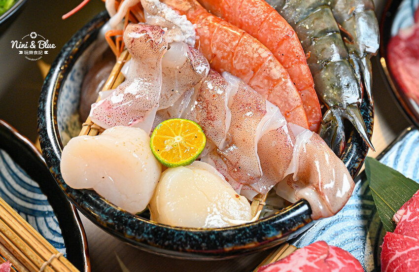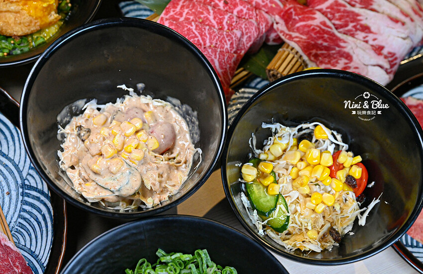 壹人盛合的肉品有松阪豚、牛肋條、板腱牛、豚梅花及無骨雞腿,總重共有450g,是基本款套餐150g的三倍肉量,以一個人來說真的是很滿足的肉量呢!