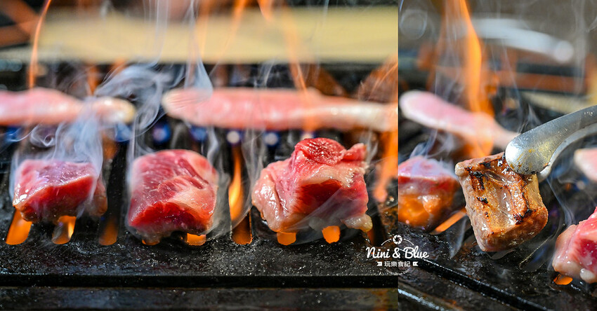 和牛肉更要細心的烤~第一面下去烤出血水至半熟後就翻面稍微烤幾秒即可,保持點粉嫩粉嫩的色澤,在口中才能感受到油脂的爆發與牛肉的甜美~