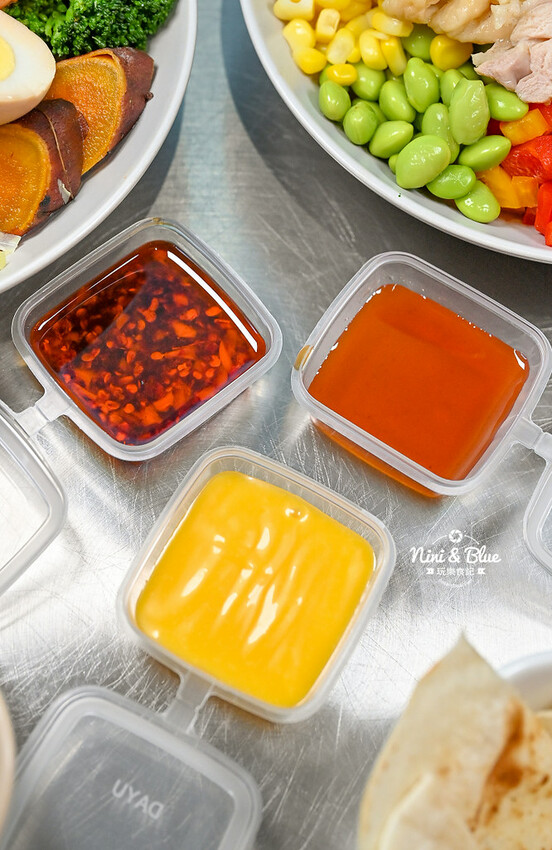 豆雞眼溫沙拉的主菜和醬料種類很多元,這次吃到的口味中妮妮布魯特別喜歡舒肥紹興雞腿、舒肥深海檸香魷魚,我們本來就愛吃菜菜,所以裡面搭配的蔬菜種類我們也都喜歡~