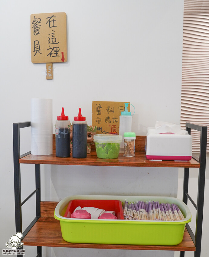 金三益健康茶飲 餐具自取,用餐後協助把餐具放置回收櫃