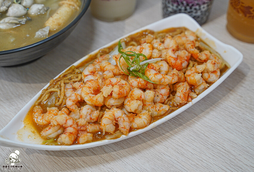 蝦爆了蒜辣麵、胡椒蝦、胡椒鳳螺、火燒蝦蒜辣麵、蚵仔鍋燒意麵