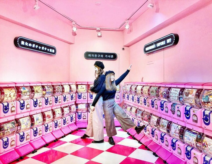 粉色控絕對不能錯過!扭蛋店雖然已經夯了好一陣子,但這家『女友の扭蛋』除了賣扭蛋,店內所有空間均以粉色裝潢與配色為主視覺,門口也特別布置了一區很有梗的「偽甜點販賣機」打卡點。走進店內更是驚喜連連,除了滿滿的粉紅扭蛋機,竟然還設置了粉色系夢幻球池、盪鞦韆、公主風格沙發區、扭蛋戰利品專屬拍照區,整個讓人少女心大噴發,根本意圖使人在這裡大扭特扭、大拍特拍!