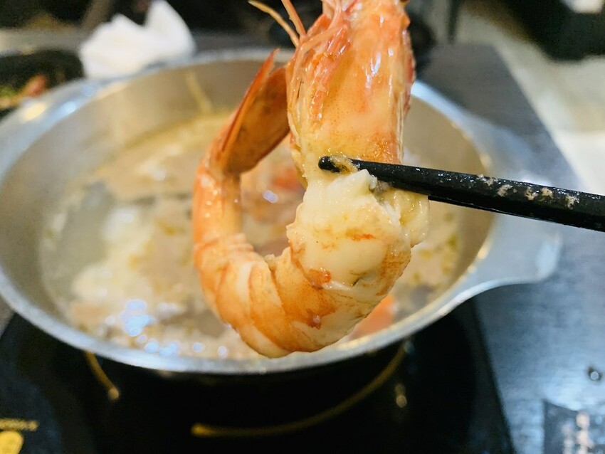 不要再管老公會不會撥蝦給老婆吃了,【武鶴和牛火鍋】新莊店的剝蝦服務讓你完全不用動手。