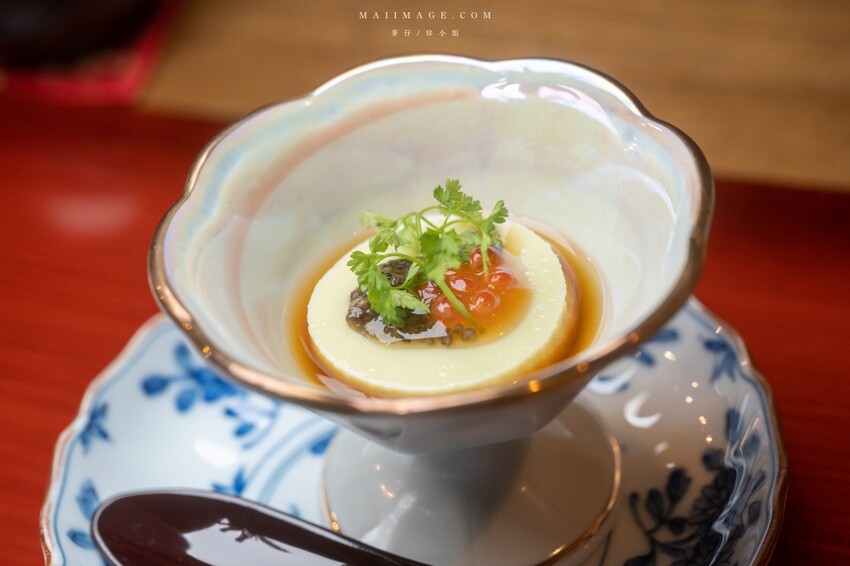 這道開胃前菜有鮭魚卵、地膚子、蘆筍豆腐,口感相當爽口。