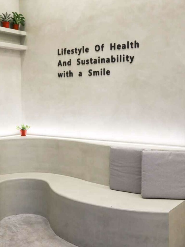 ▼沒想到飲料店也有提供這麼漂亮的座位區。店裡極簡的灰白色調看起來相當舒服