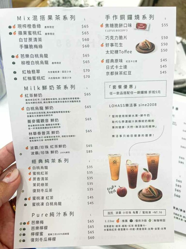 承載中壢人記憶的「LOHASS樂活事鮮果茶」重新回來啦!堅持使用新鮮水果、鮮牛奶,秉持健康、天然、無添加的精神,加入基底茶製作出一杯杯好喝的鮮果茶系列。高成本但價錢卻很親民,手搖新選擇建康又好喝才是王道。店內還有販售手作日式銅鑼燒,餅皮柔軟、內餡料多相當好吃