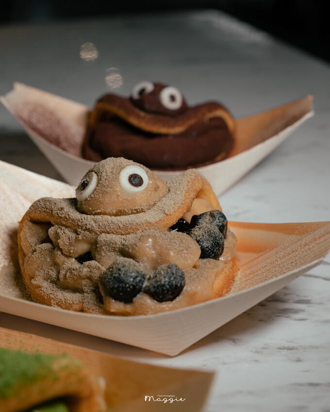 髒髒燒外層是綿密又鬆軟的菓子燒,裡頭擠入極濃厚的cream,一口咬下會爆漿!可說是相當真材實料,外皮還會再抹上醬、撒粉,帶來多重的味蕾享受。「京都抹茶」是茶香濃郁的抹茶,吃著吃著會有淡淡的茶回甘,與奶霜很互補,抹茶控必須朝聖。