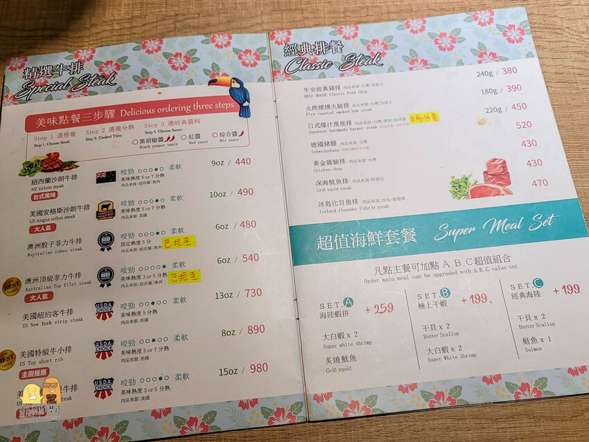 牛室炙燒牛排菜單價格