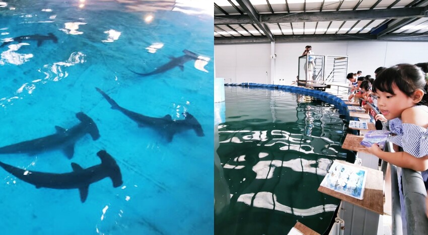 這裡根本是親子水族館,。門票100元無任何折抵。幾十個水族箱能看到鯊魚、魟魚、小丑魚…魚等海洋生物。透明觀景台和鯊魚合照是必拍照打卡熱點,餵鯊魚一次300元,別忘了點金車鮮蝦新鮮好吃