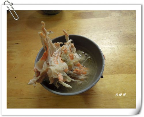 免費的味噌湯第一碗有舀到碎魚肉,第二碗就只舀到清湯