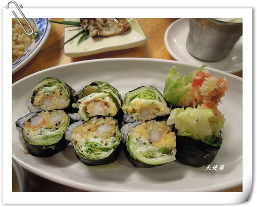 招牌捲~青脆的生菜包上少許米飯及炸蝦,還算不錯吃