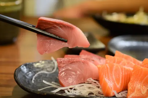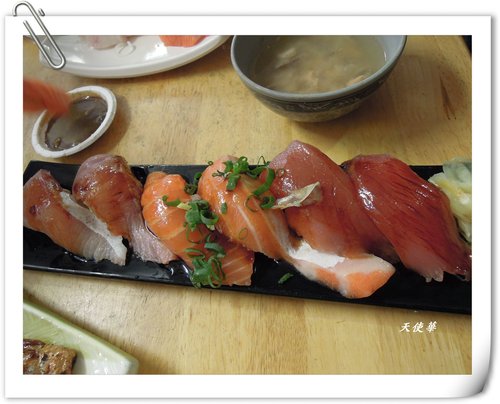 生魚片有新鮮,很特別的是定食還有附雞腿