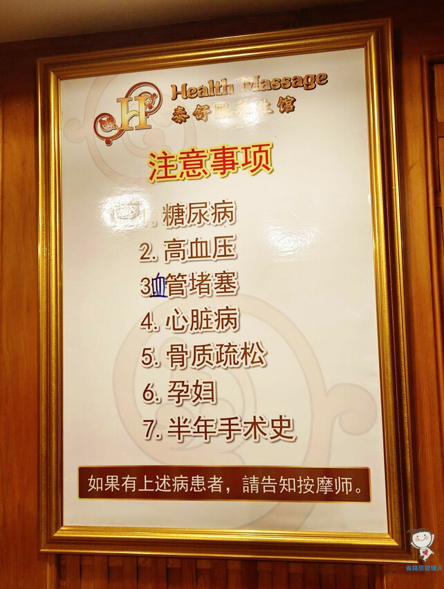 牆壁上還貼了這些警語,如果有以上幾種狀況,記得告訴按摩師