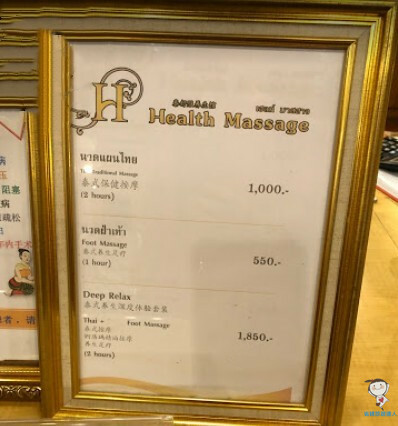 櫃檯上有按摩的價錢,二個小時$1000,另外還有一小時的肩頸按摩$550