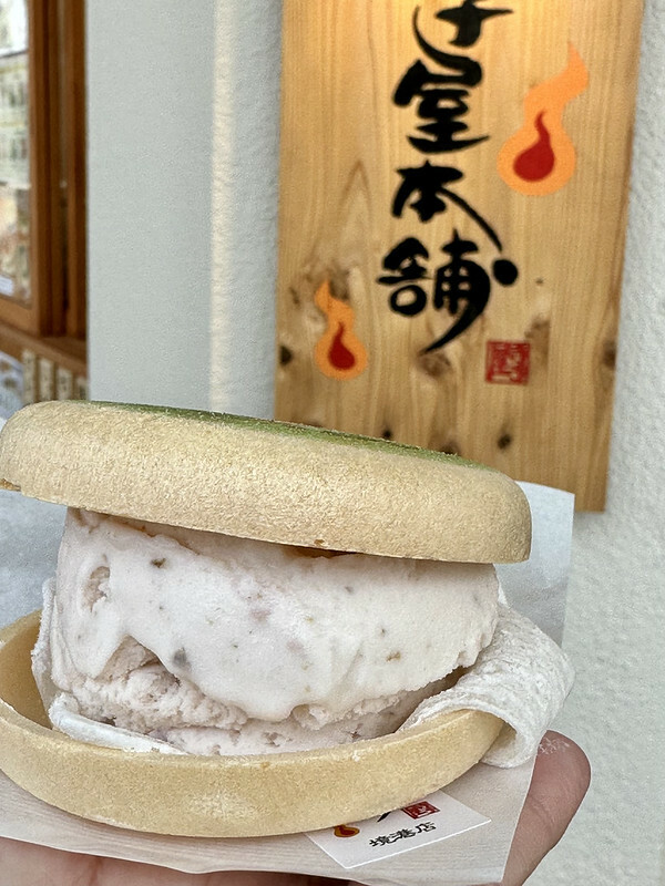 「最中」(もなか)裡頭包的是櫻花口味的冰淇淋,