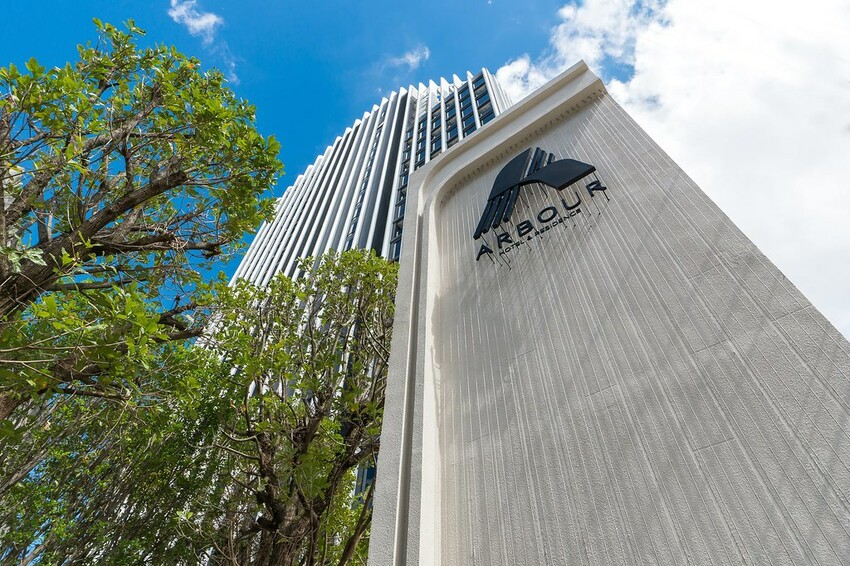 「Arbour Hotel and Residence Pattaya」位於Pattaya 中央區,Central Pattaya Rd 跟Pattaya 3rd Road 交叉口,建築物的線條及特殊造型的屋頂,不管近看遠看都相當顯眼。