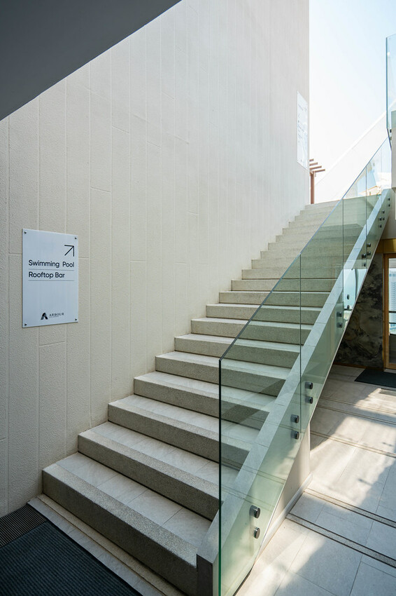 在23樓電梯梯廳左手邊會看到一個通往24樓無邊際泳池及池畔酒吧的樓梯,有許多旅客在這上上下下的拍照拍影片。