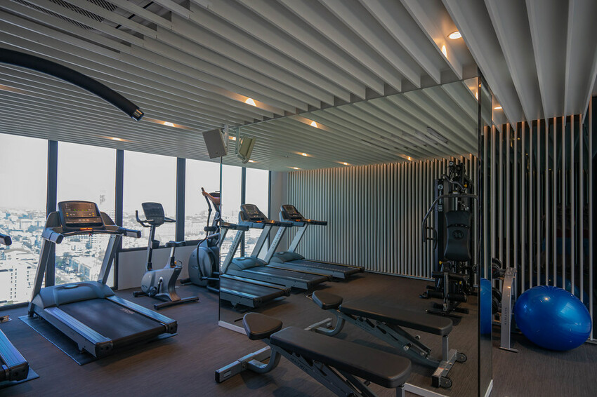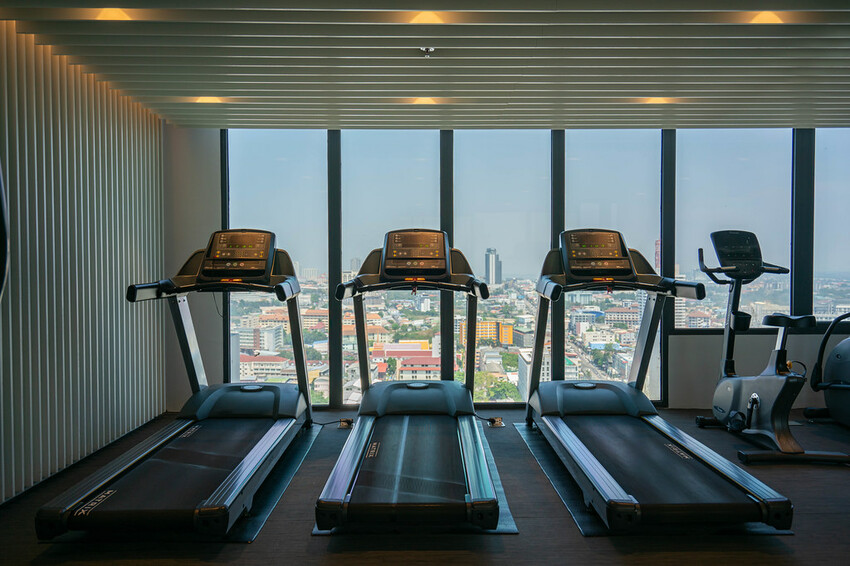 健身房不大,設備屬於比較基本的,但也夠用了,最棒的就是高空遼闊的視野了,邊跑步邊看著窗外的美景,感覺超棒的,這種機會可不多!