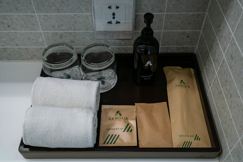 洗手台旁的盥洗用具只有提供洗手乳、牙刷組、浴帽、棉花棒,有其他需求就得自備了。