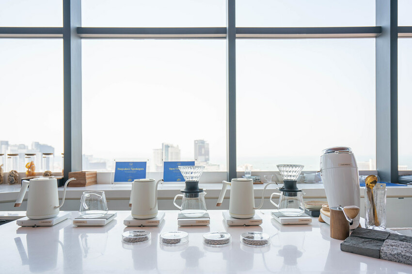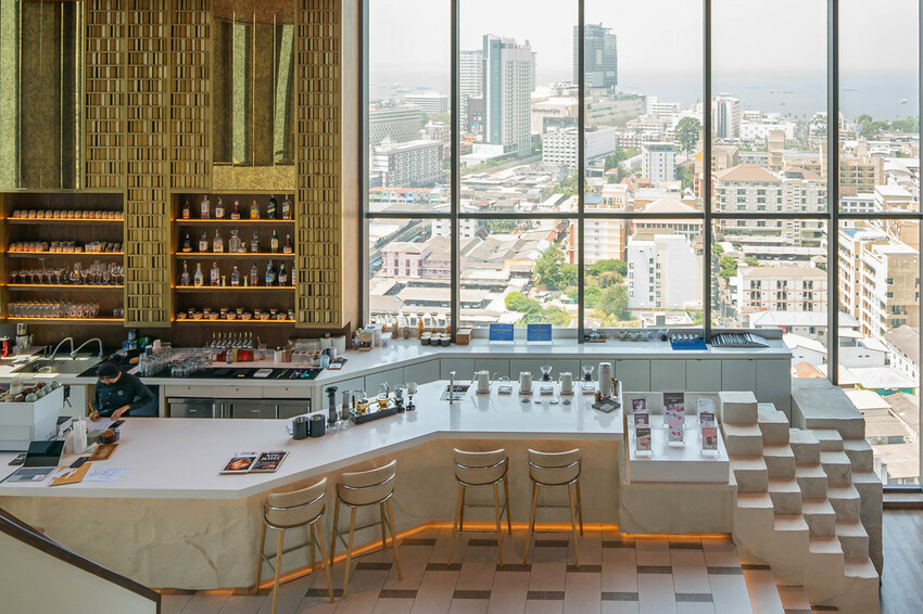 一進門就看到一整片大大的落地窗,窗外的美景一覽無遺,設計感十足的吧台也是美到翻掉,坐在這個吧台一邊喝著咖啡或特調雞尾酒,一邊眺望遠處的海景,真的太享受了!