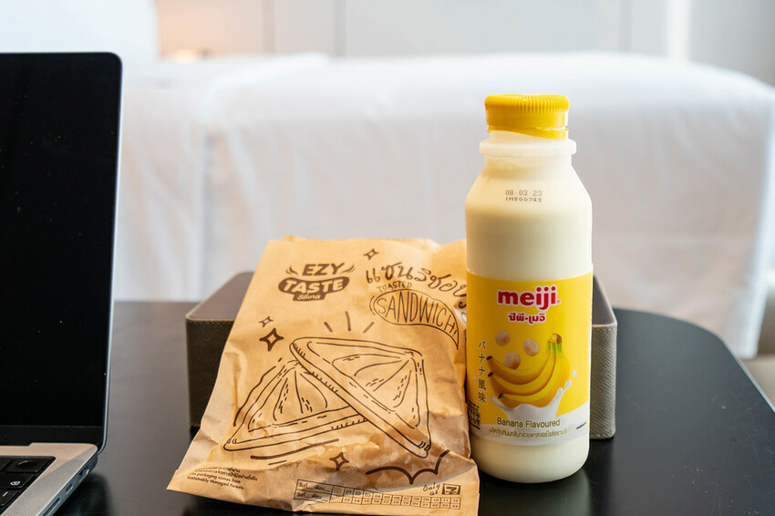 買早餐或宵夜坐在沙發上吃,一邊上網查一下口袋名單決定去哪,是不是很愜意?這是7-11的熱壓吐司及明治牛奶,我不知道要吃什麼時的早餐組合。