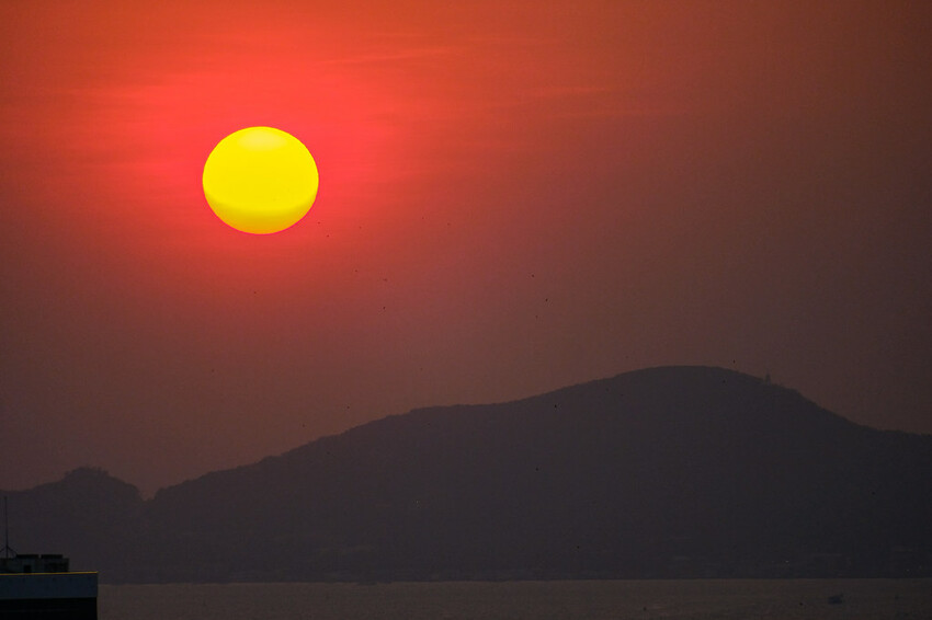 一整顆美麗的夕陽緩緩落下