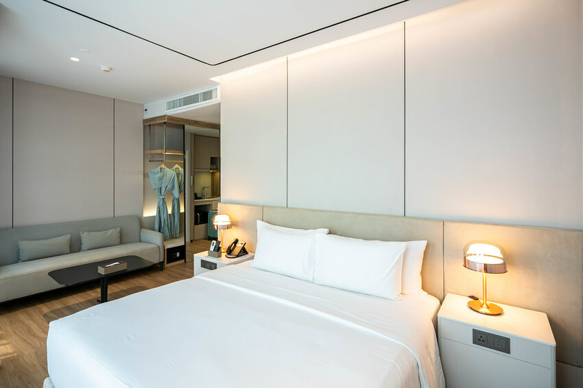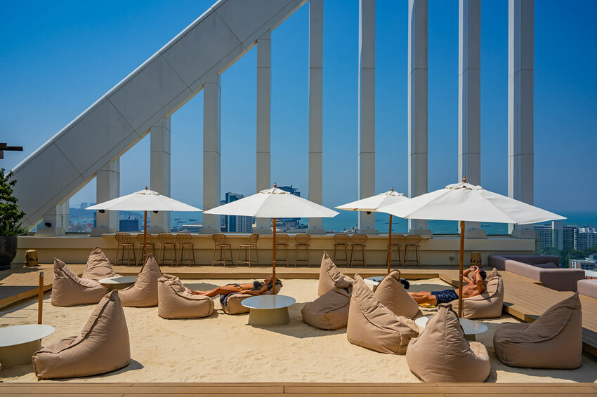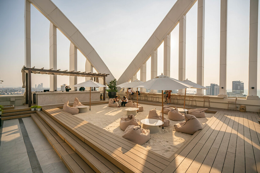 因為疫情關係已經好幾年沒去泰國玩了,超想念泰國的陽光、沙灘、比基尼,2月底終於可以排個泰國行了,行前朋友得知我會在Pattaya待幾天,就推薦了我一間酒店,就是這次要跟大家介紹的五星級公寓式酒店「Arbour Hotel and Residence Pattaya」,這算是一家新的酒店,於疫情期間2021年9月全新開幕,一開幕就吸引了眾多泰國網紅蜂擁而至,整體以純白色調為主,走的是極簡風的設計風格,頂樓的特殊鏤空設計相當吸睛,當陽光透過屋頂灑落在無邊際泳池水面上時,只能說美不勝收。還有一點很厲害,酒店直接把沙灘搬到了池畔的高空酒吧前,營造出坐在海灘上喝酒賞景的感覺,光在頂樓就可以拍爆記憶卡了!非常適合情侶或閨蜜一起來住,而且房間簡潔雅緻有質感,我的床前就是整片大片落地窗,視野跟採光都超好,非常推薦大家來Pattaya玩一定要住「Arbour Hotel and Residence Pattaya」,絕對值回票價!