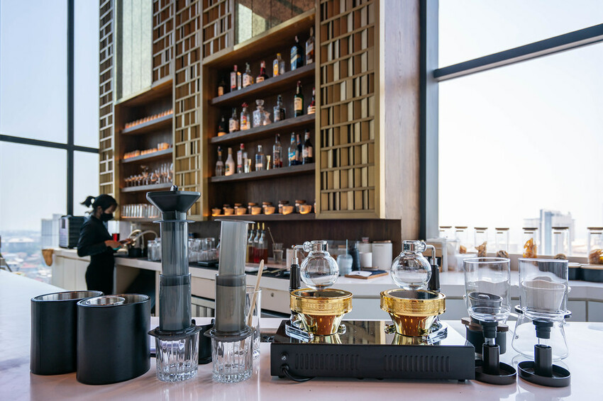 緊鄰接待大廳的咖啡廳座位區,咖啡吧主要是提供各種類型的咖啡、冰沙、軟飲料和美味糕點外帶,從早上10點營業到晚上10點,早上出門時可以來一樓點杯咖啡開始一天的行程喔!
