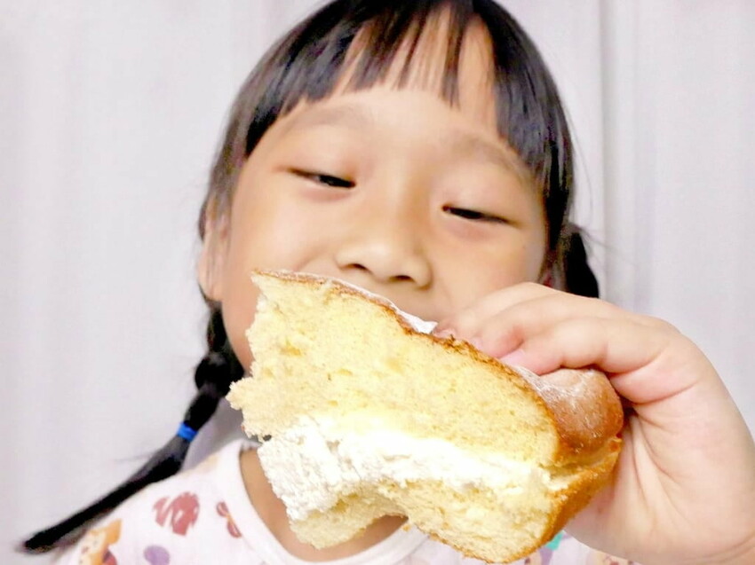 寶貝正在享受酸甜檸檬香氣. 以及和入口即化的鮮奶油內餡. 陶醉其中呢~